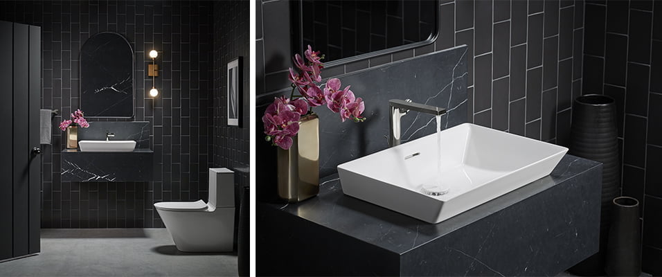The new Brazn suite from Kohler takes inspiration from the Modernist movement with pieces that combine the simplicity of minimalism with elegant, functional solutions. Available in striking Honed Black as well as White, Brazn is bold in any space.