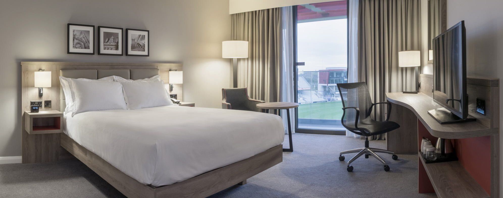 Following the completion of The Point and Player & Media Centre, the 150-bedroom Hilton Garden Inn at Emirates Old Trafford Cricket Ground has further cemented the stadium’s reputation as an outstanding sports and events facility. The new 4* contemporary hotel is the final piece of the venue’s multi-million pound redevelopment with the hotel scheme costing £15m for the demolition of the old hotel and building of the new, more than doubling capacity in the process.
