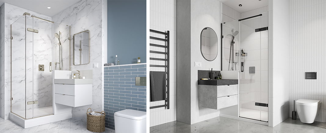 The current trends are also moving away from clear glass into textured and printed glass, with a huge variation on glass thicknesses and finishes available. Roman recently unveiled more striking fluted-glass options on its Liberty Wetroom Panels, Liberty Sliding Door and Liberty Hinged Door with In-Line Panel. The solid-surface options match almost every Pantone colour or marble finish, depending on the design and budget required.