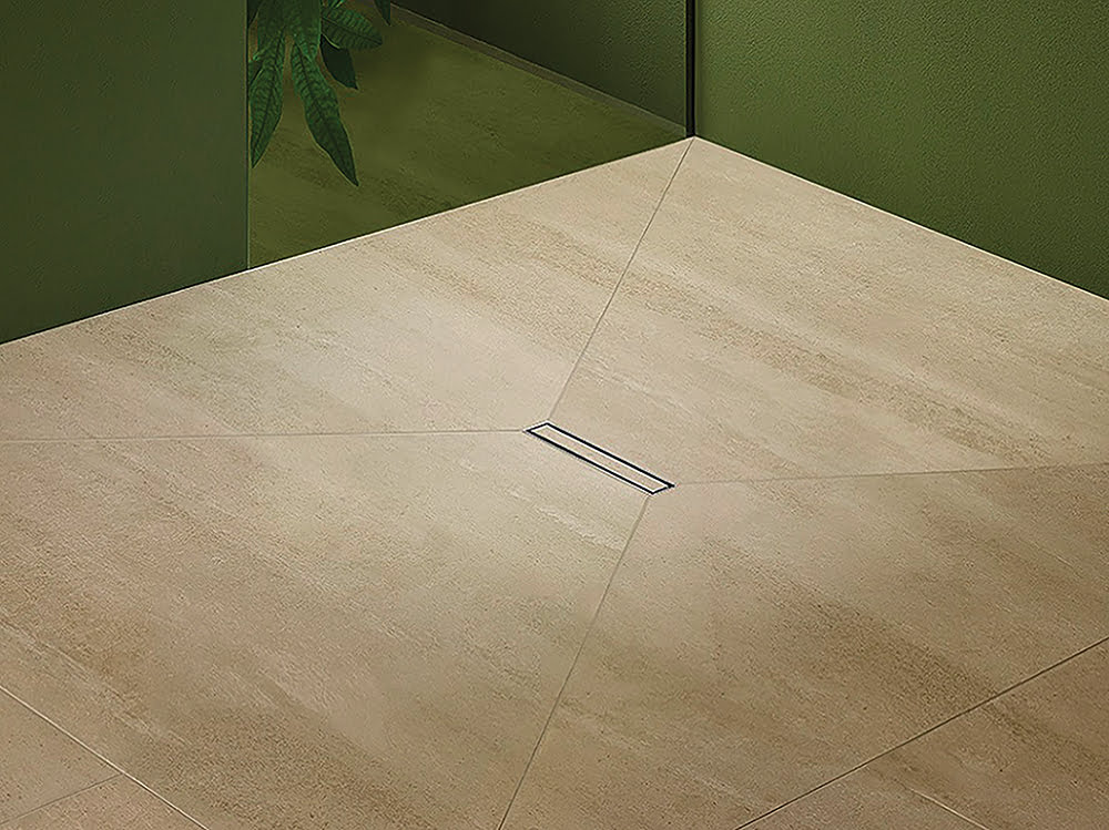 CeraFrame Individual is a compact, short shower channel for flush-in-floor installation. The only thing visible is a discreet 300 x 50 mm rectangle. The short shower channel is an ideal frame for a minimalist cover plate.