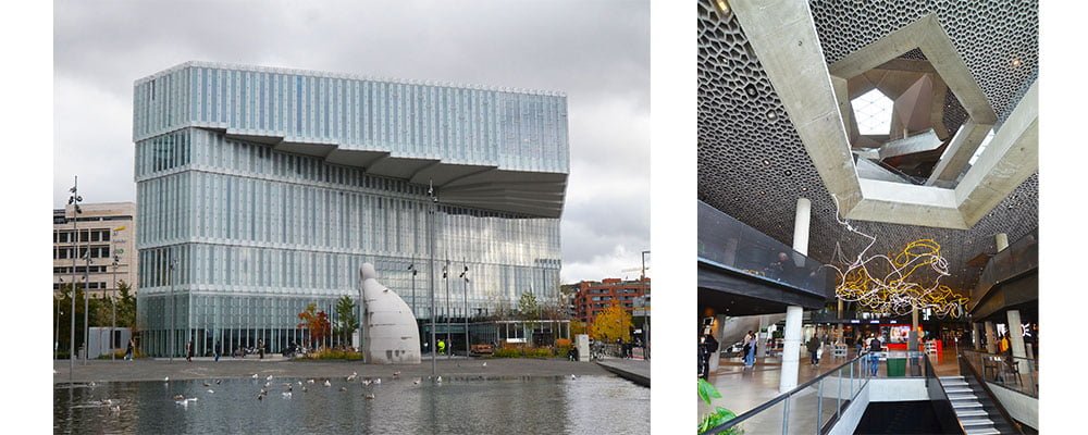 The building’s overall concept generates a unique impression: in addition to the actual lending and reading of more than 400,000 books, there is a year-round program of concerts, fairs, workshops, and various courses for all ages. Visitors can while away some time in the restaurant and cafeteria with roof terrace, which offer not only food and drink but also a dash of hygge.