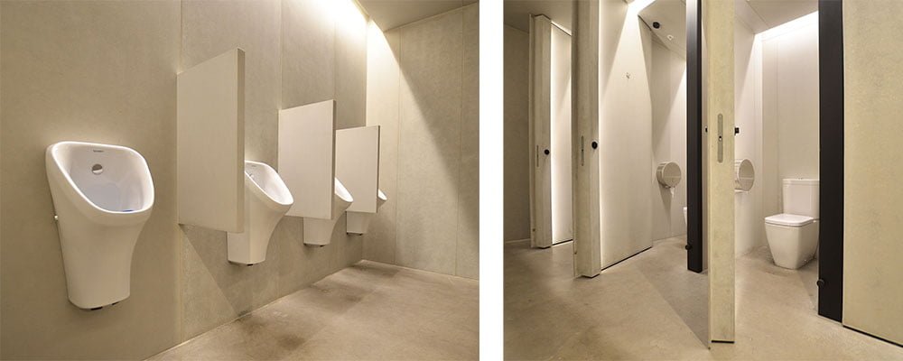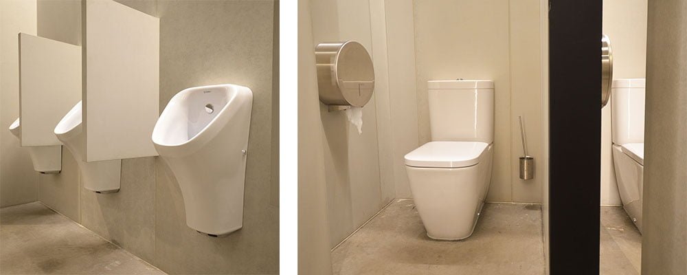 When viewed from outside, the striking elements of the Deichman library are its sloping frontage and glass façade. Another truly outstanding feature is the fact that the building meets the Passivhaus standard, resulting in a saving of 50 percent of emissions compared to similar buildings. This was achieved using an innovative façade structure, novel ventilation systems and cooling with sea water, as well as the use of recycled materials. The sustainability concept extends into the bathroom areas: toilets from the Happy D.2 range as well as electronically powered DuraStyle urinals from the designer bathroom manufacturer Duravit guarantee optimized water usage, hygiene, and short cleaning times.