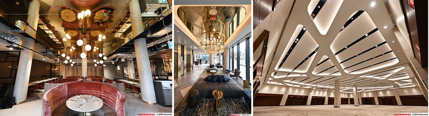 From left to right: Novotel, Leicester, England – Barrisol Gold Mirror ®Arch.: LeachRhodesWalker – The Deluxe Group