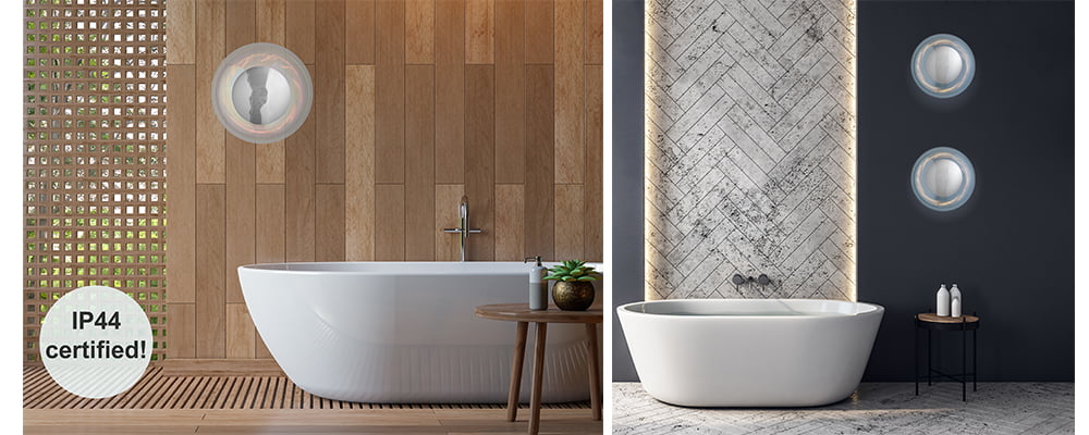 The new Horizon ceiling/wall lamp combines simple styling with superb functionality. Its dual purpose of being both a ceiling lamp and a wall lamp makes it perfect for bathroom interior projects, it’s decorative and simply a statement lamp. With its recent IP44 certification, the Horizon will add colour and beauty to many styles of bathroom.