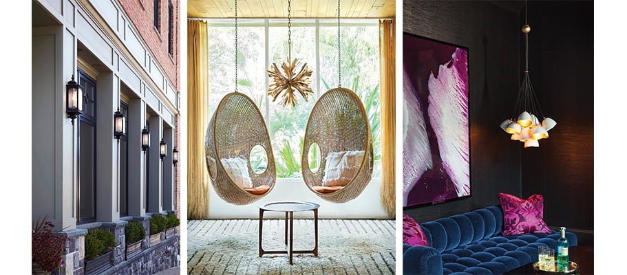 Featured is the Nula fifteen light pendant cluster by Lisa McDennon for Hinkley. This is a juxtaposition of industrial elements and organic influences that transmit simplicity into decadence. Pairing a dense chalk-white exterior with a gleaming, luxe gold interior elicits a dramatic effect. Nula has several designs in the family that offer flexibility to customise for unique installations.