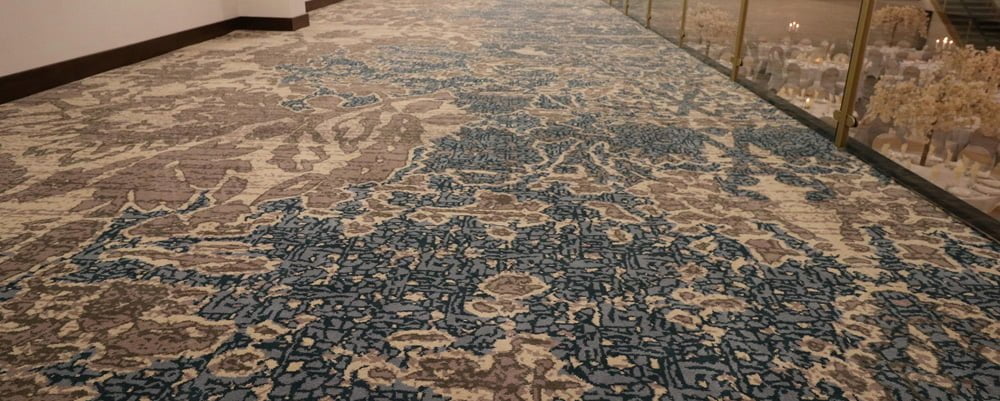 The stunning Ethereal collection of wool-rich woven axminster by Wilton Carpets, has inspired a striking new floor for the impressive mezzanine at Preston’s Imperial Banqueting Suite, a new wedding venue inspired by Dubai’s luxury hotels.