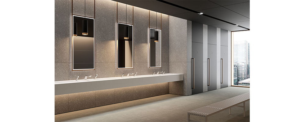 HIMACS’ strong performance qualities immediately appealed to the fabricators, who were particularly impressed with the surface’s exceptionally smooth finish. Already a popular choice for commercial washrooms, it’s non-porous, low-maintenance and high resistance to damage, scratching and abrasions meant it could deliver the uncompromising hygiene levels required.