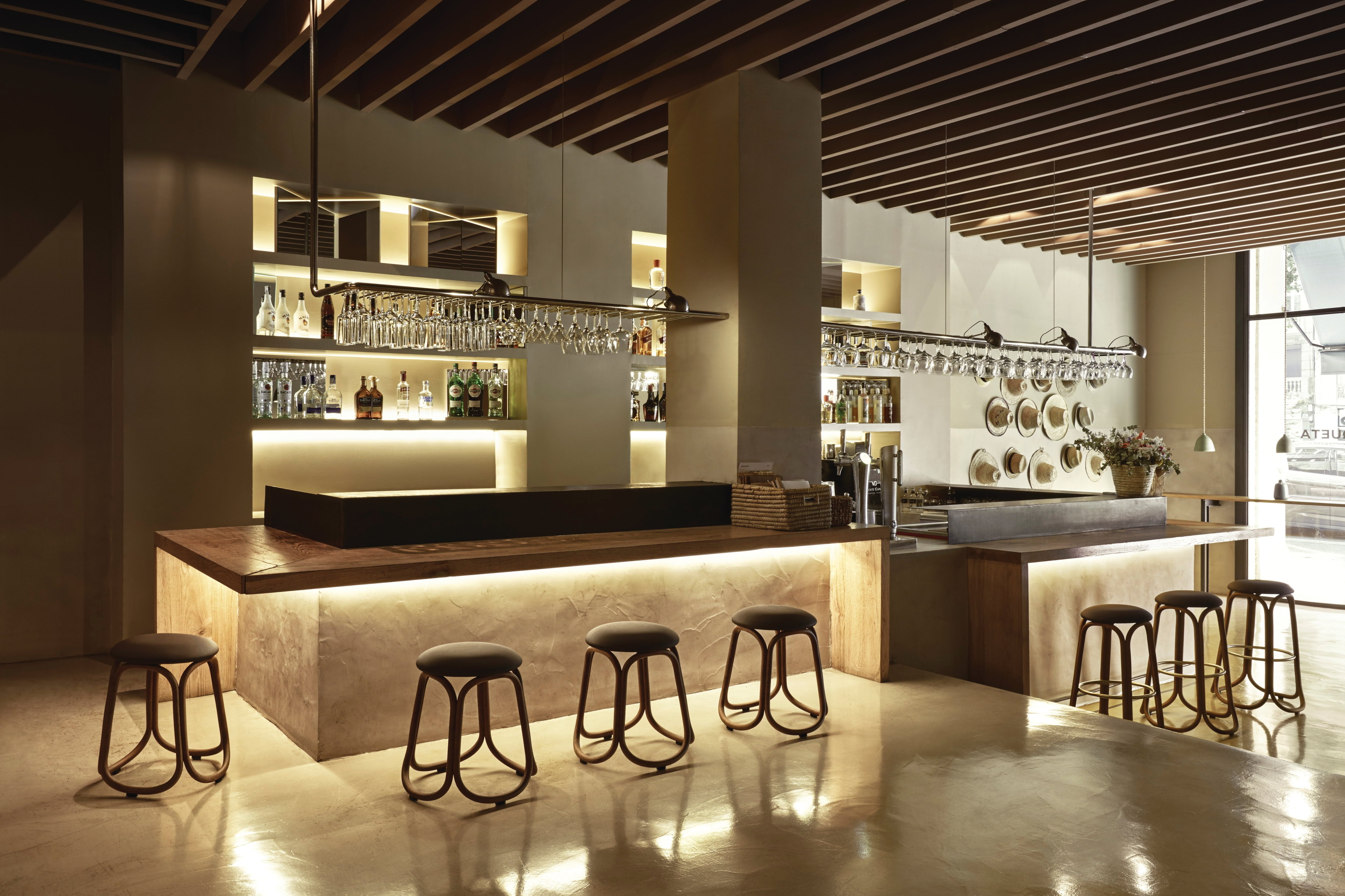 The Gres stool was first designed by Miguel Milá in 1962. Its structure emerges from a game of tangent lines between its four organic frames and of those with the seat, thus securing stability and turning it almost transparent.