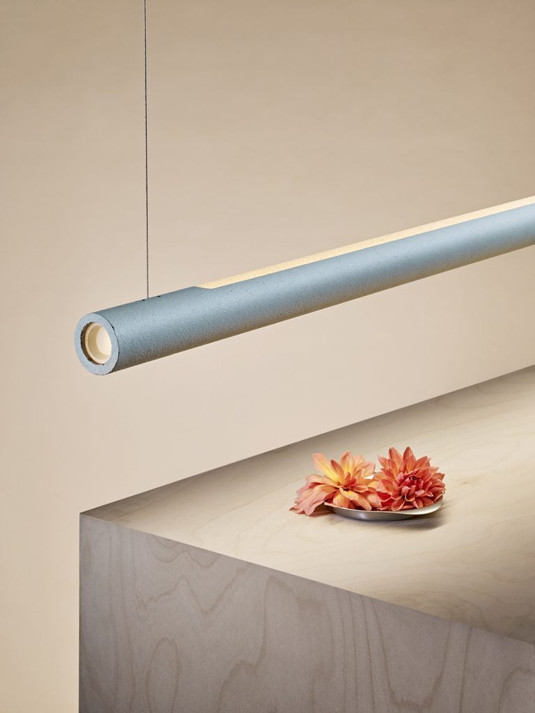 Inspired by their love of ceramics and industrial forms, this highly architectural beam light can be used in a multitude of different ways to enhance a space through its shape as well as its light giving properties.