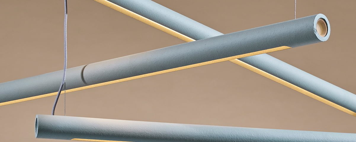 The O-Beam light blends industrial forms and processes with the unique texture and look of ceramics to create a highly versatile light that suits a myriad of spaces, whether used as a subtle background piece or a show- stopping installation.
