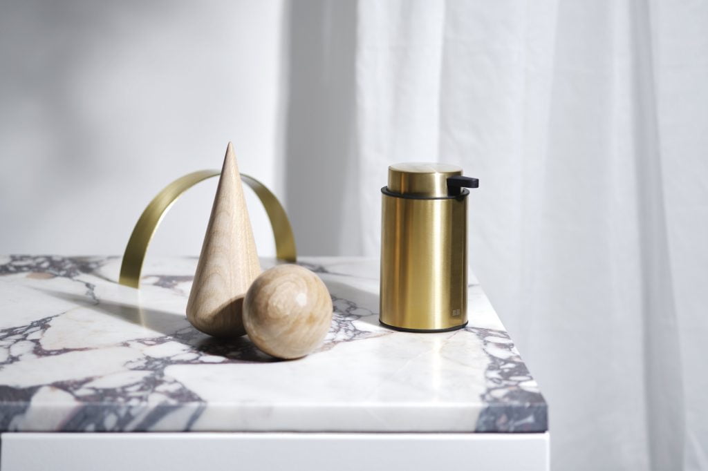 Available in two formats as a countertop model or a wall-mounted version and five different finishes: brushed stainless steel, polished stainless steel, as well as PVD-coated brass, black and copper.