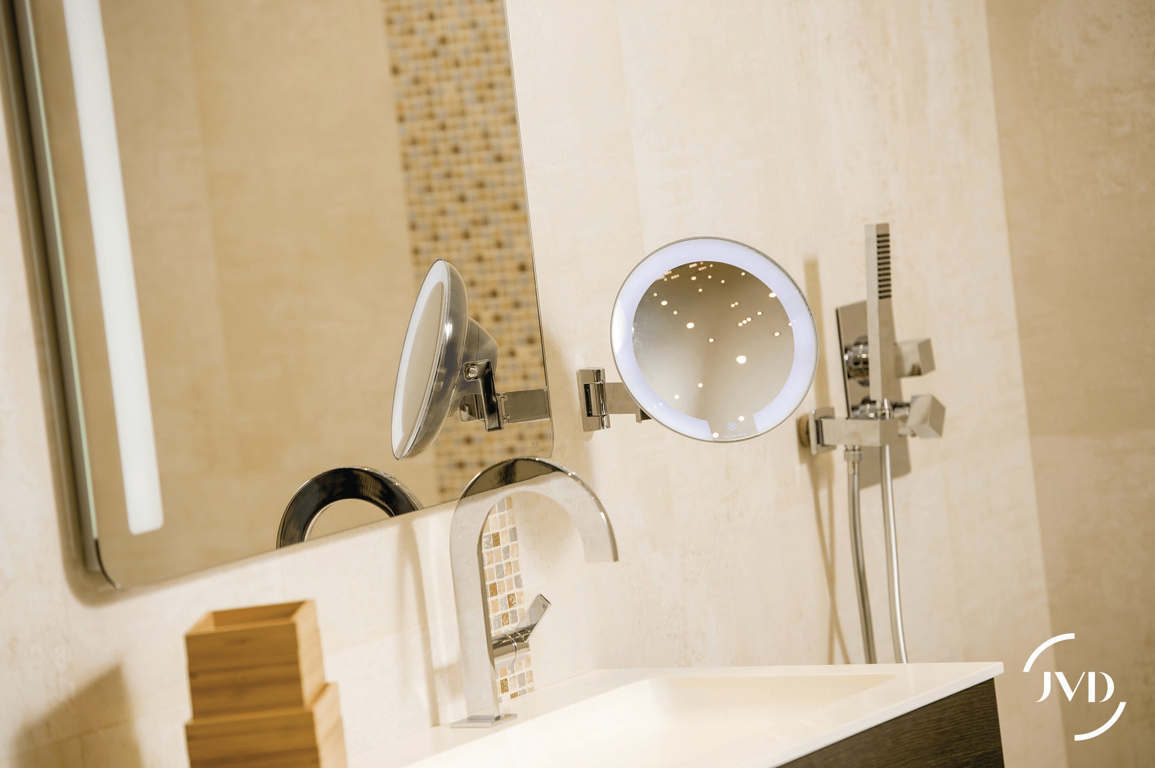 Mirrors invite us to enter a new dimension. The magnifying function of a mirror creates a new universe where everything is bigger. Available in several formats and with different magnifying reflexion, JVD mirrors are manufactured in Nantes, France. Created by their own French design department, their mirrors are totally electrically secured and are specially studied for hotel bathroom use.