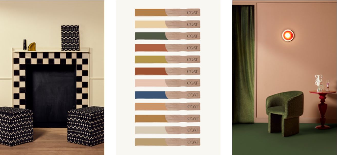 This collaboration introduces 12 bespoke shades to COAT’s timeless colour library, carefully designed to complement Kirkby Design’s latest textile collection, HEIR.