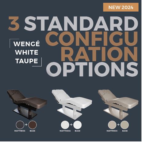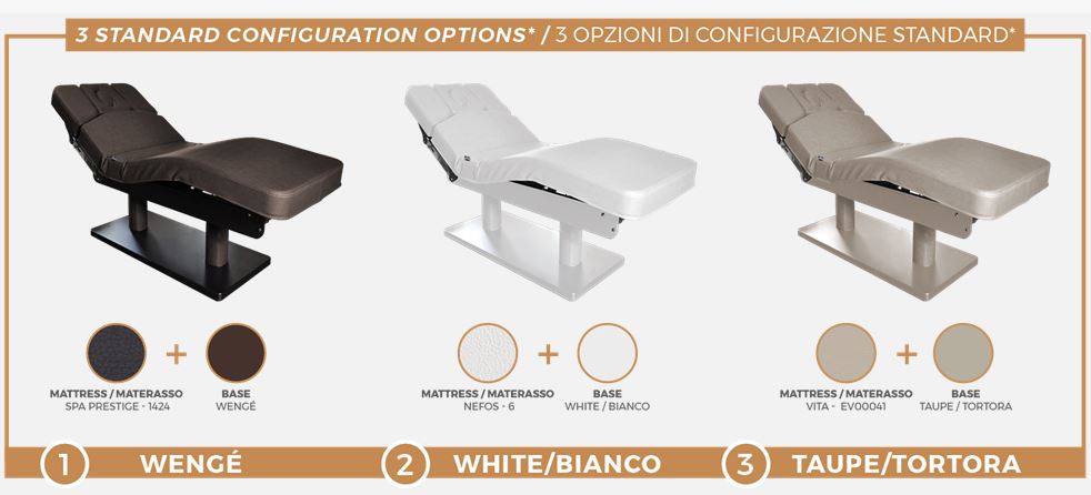 Thanks to the innovative mattress with HBS Stress Relief System, guarantees maximum comfort for both the client and practitioner alike. Equipped with three independent height, backrest and legrest adjustments and a solid painted wooden base with double column elegantly covered.