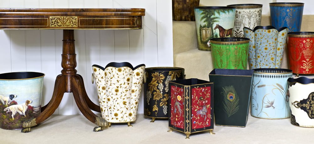 Their handmade accessories are available in a range of luxury materials, including wood, metal, leather, steel, inlay, rattan, cut crystal, fabric and attractive faux finishes.