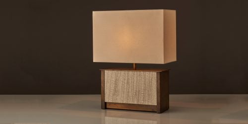 Our Vienna table light features a customisable panel where designers can choose a design or material...