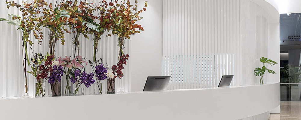 Rita Gasalla and her company Galöw were responsible for remodelling the lobby, which incorporates the revolutionary compact mineral from PORCELANOSA Group, KRION™ K-Life, the material which purifies the air.