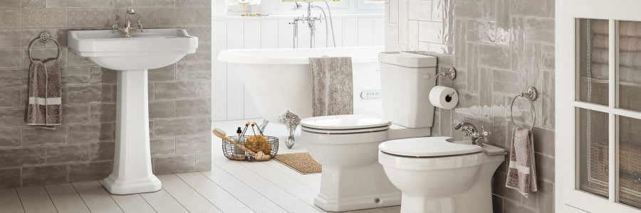 The collection includes a close coupled WC, basin and pedestal, with a complementary furniture range and mirror also available.