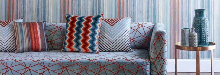 Merging pixelated forms, structured strié and urban geometrics the ‘Expressions’ trend focuses on graphics that add an instant visual interest to spaces. Tactile textures and geometrics have a transformative influence in creating a boutique ambience. Bold lines and powerful patterns from the new Harlequin Momentum collection fuse highlight colours and contrasting textures for a distinctly different feel. Depth and drama are folded in with Clarke & Clarke’s Kaleidoscope collection, sophisticated geometric styles captivate through multipurpose velvets and boucle weaves.