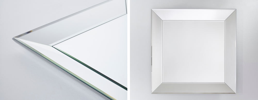 This contemporary square mirror from Tindle (MD046) exudes styles and simplicity and features a high spec bevelled glass frame that reflects light all around. It is 89cm across and weighs 12kg.