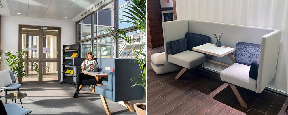 The popular TOOaPICNIC range from Agilita, designed and manufactured in Holland by Jules Vreeswijk are a perfectly balance of Form and Function. The TOOaPICNIC is available in a selection of sizes with high and low backed soft seating option available in 4 different heights, giving you varying degrees of privacy as well as providing both acoustically and visually option. The integrated table answers the need for quick meetings, whether that be in the lobby of a hotel or amongst the hubbub of a modern co-share workspaces. Its unique frame design is constructed from European Oak and available in range of different fabric & frame finishes, to help you create the perfect product for your project.