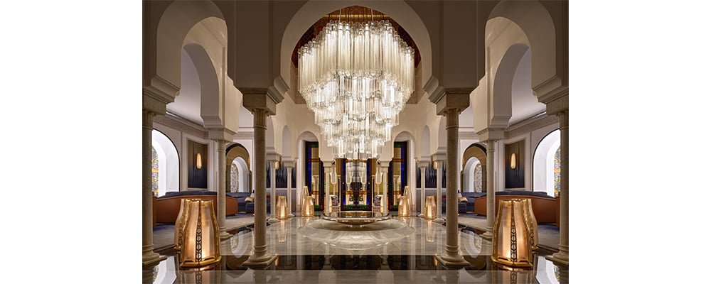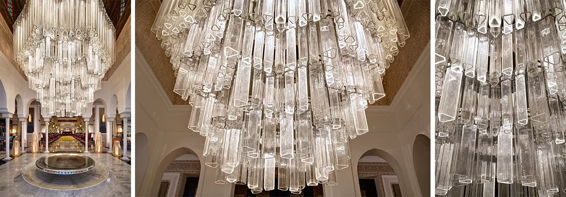 The La Mamounia Hotel in Marrakesh is considered an oasis of calm in the middle of the Moroccan desert and one of the most beautiful and renown hotels in the world. For its near-100th birthday, La Mamounia has decided to refresh its interior, which is now complete for two brand-new installations made by Czech-based designer and manufacturer LASVIT, paying tribute to traditional Moroccan architecture and bringing a breath of fresh air to the luxurious space.