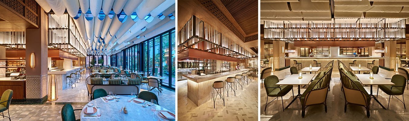 The Italian restaurant in the Moroccan hotel fits well with the hotel’s philosophy, which is very multicultural – the Tea Room, for example, draws inspiration from the French confectioner Pierre Hermé, whose macarons, as well as teas, are often considered the best in the world. In addition to the Italian restaurant, there are also the Asian restaurant, and the Churchill Bar designed in a typically British style.