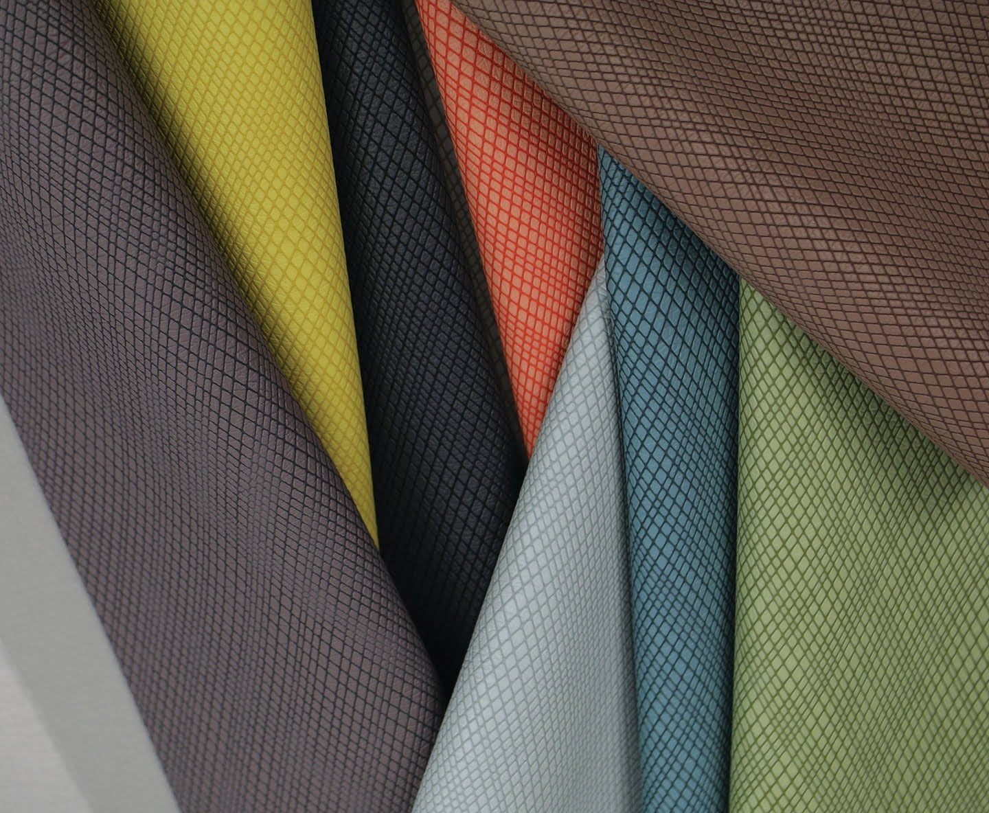 Designed to challenge conventions and change expectations, Ultratech by Ultrafabrics represents a new category beyond traditional polyurethane varieties with a level of tactile appeal that must be touched to be believed. Wired, the newest grain in this ground-breaking collection, features interwoven diagonal lines and a gentle layering of colour providing depth of design. Lines create a sense of movement and interaction. Colours create emotional connections. The hand of the fabric subtly remakes the connections we form around new experiences. Twelve colours available from January 2018.