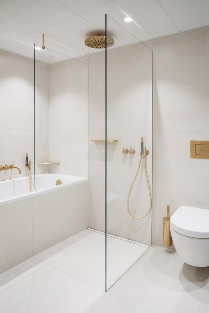 “The shower screens and the rail render the screens pretty much invisible. This makes a small bathroom feel more spacious, it was the perfect solution,” explains Lyck.