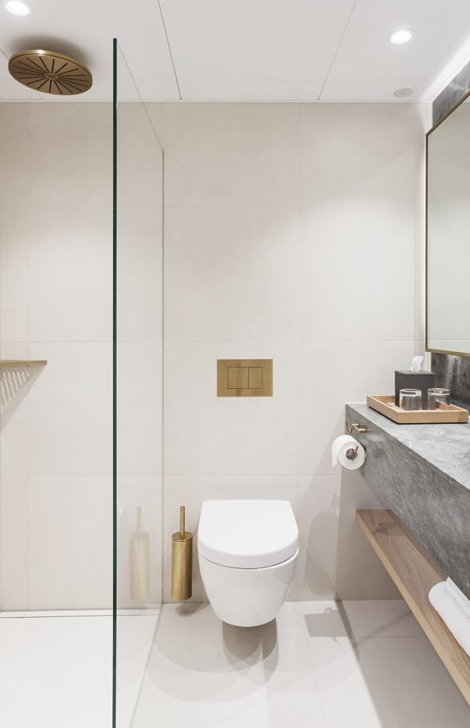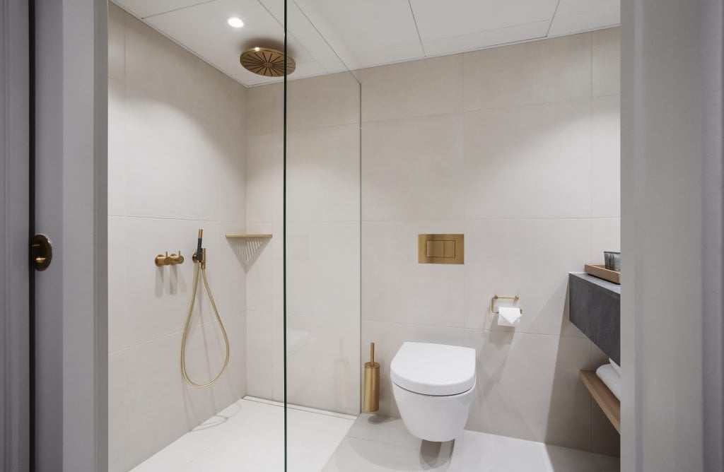 “The hotel bathrooms are relatively small, so it was important to install shower screens which could barely be seen, which we managed to do,” says Lyck.