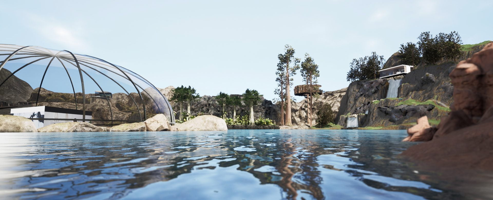 The totally immersive experience enables the user to move from area to area on a stunning island backdrop with a central glass dome from where they can view the whole of the Virtual Tour. The dome is the central focus, enabling the ‘visitor’ to see at close hand the newly launched Acquabella products and enjoy the informative technical area with ingenious visual aids. The Acquabella Virtual Tour takes the user around 10 different worlds within the Island; each one imaginatively creating an environment which represent the different Acquabella textures; Quiz, Arabba, Ethnic, Slate, Beton, Nude and Zero micro-texture.