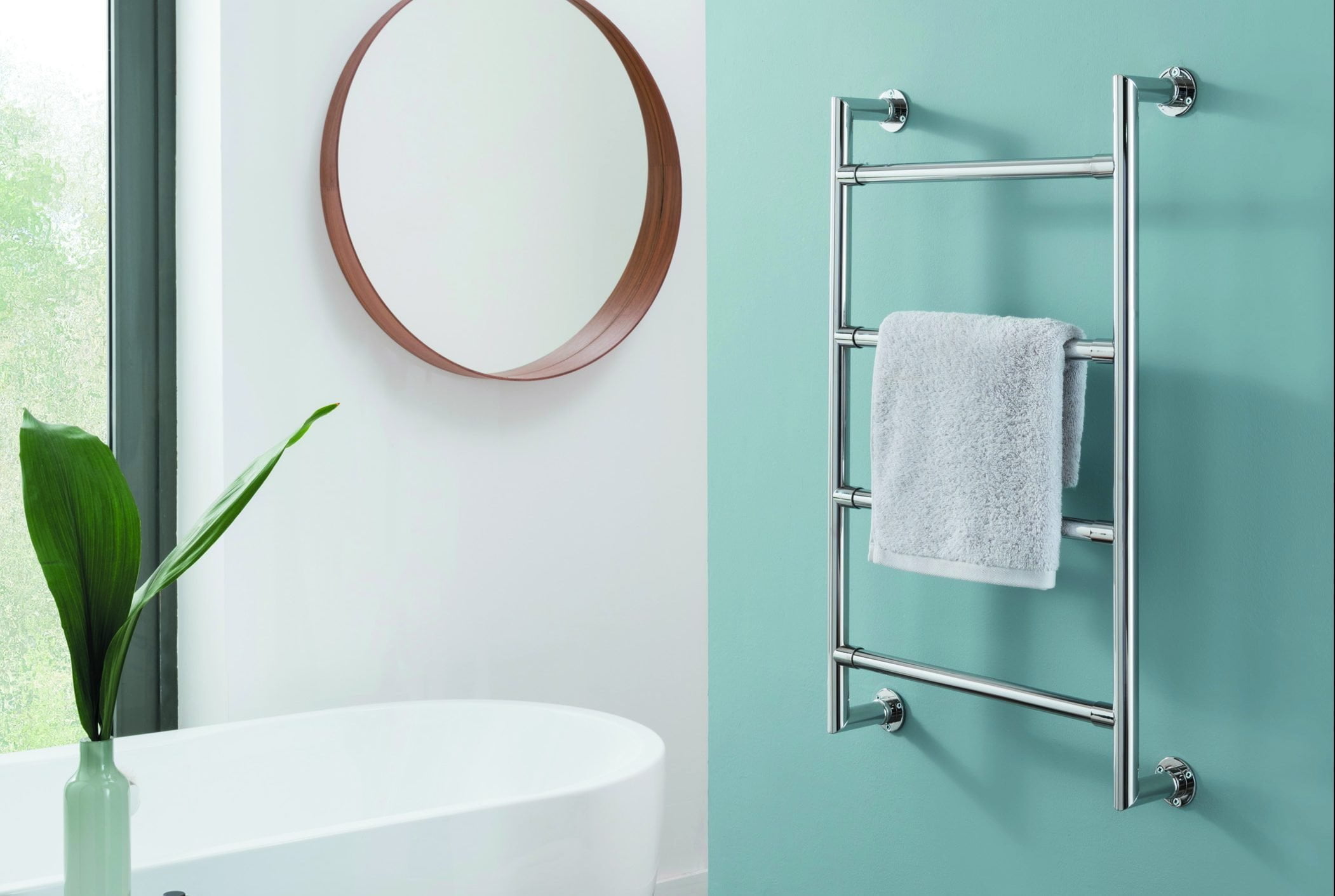 Instead, this contemporary towel rail design is heated by a silicone heater cable via a three-core cable that can be attached to a fuse spur, if required.