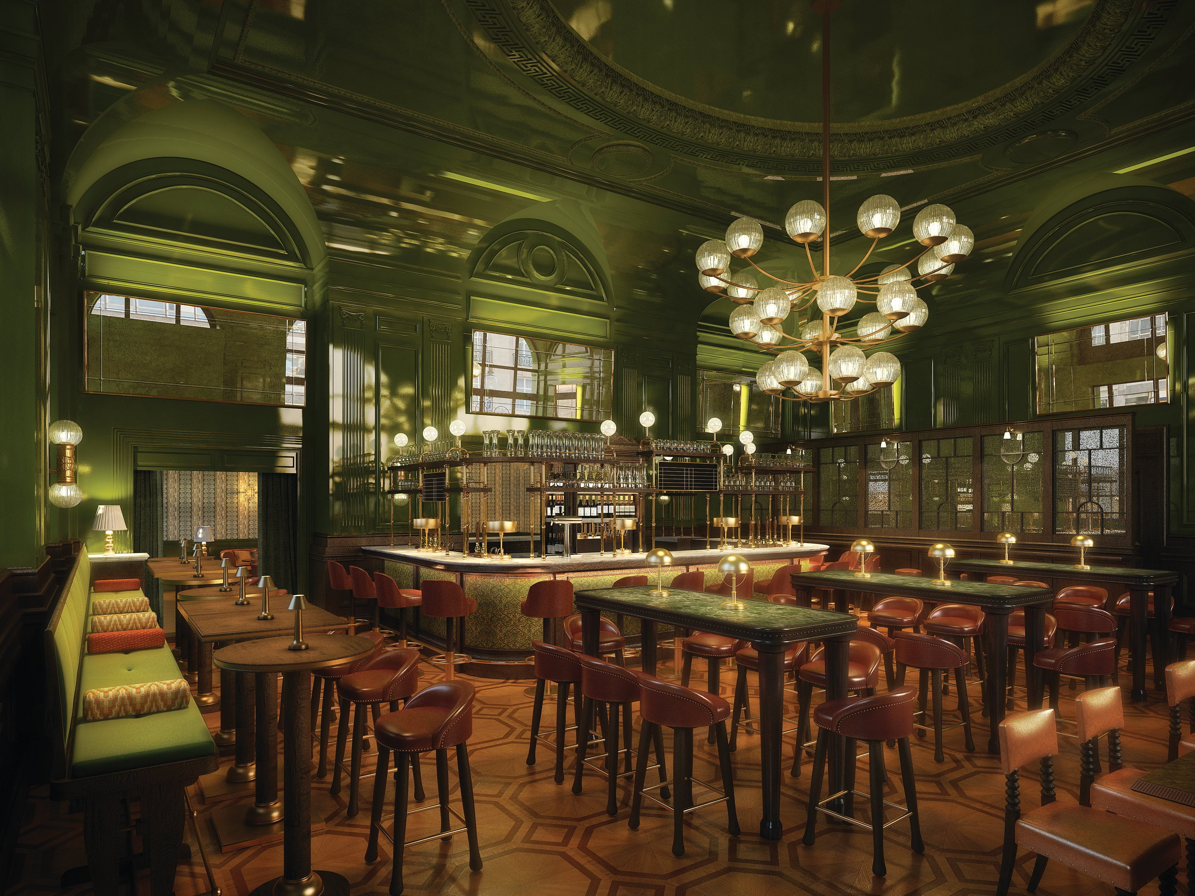 The Langham London recently opened The Wigmore, a modern British tavern with interiors by Martin Brudnizki Design Studio. It features bespoke lighting from Dernier & Hamlyn including a spectacular 27 arm chandelier some 2m high and 2m across that was hand-cast in brass and hand-finished in antique bronze by Dernier & Hamlyn’s team of artisans. The chandelier was designed to be a luxurious, contemporary interpretation of traditional London pub lighting.