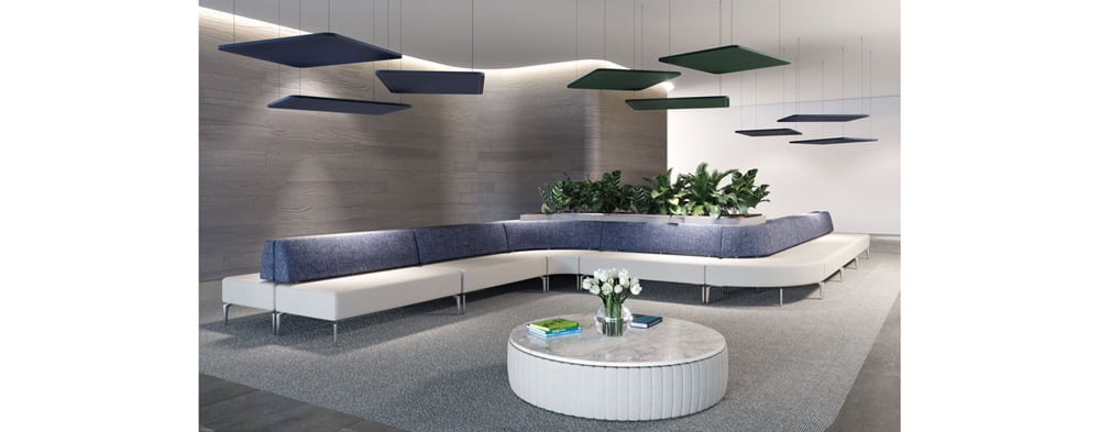 There is also the option to order a suspension kit solution, allowing EchoPanel® Element to appear to float in space, creating a design focus, as well as providing an acoustic baffle. There are ten different colourways available in total, all chosen to enhance a variety of contemporary commercial interior settings.