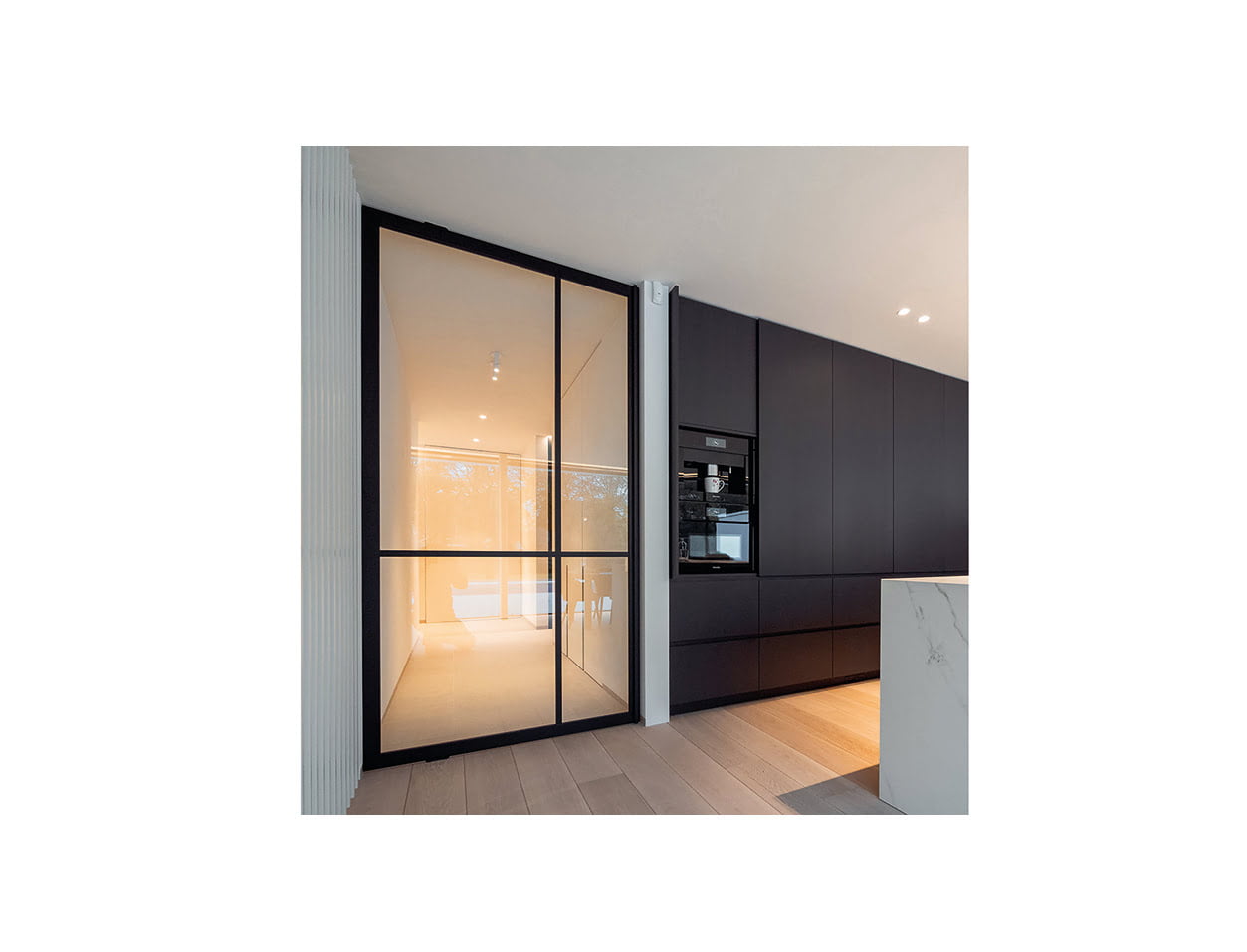 Wow Glass‘s Pivot Door room dividers can be used on their own as a door or part of a glazed wall. The room dividers feature a minimal aluminium frame in four finishes; Stainless, Silver, Bronze and Black. The dividers are glazed with 8mm toughened glass and fitted with surface mounted invisible pivot hinges. They also have optional variable grid profiles, allowing for an endless pattern choice. The pivot door can be up to 2.95m wide.