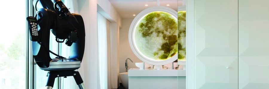 Marcel Wanders created themed suites – giving guests recurrent surprises and delights. In the Naughty suite, guests are introduced to seductive materials and textures. The Stargazer suite, set in a prime location, offers an interrupted view of the sky and a telescope to gaze at the stars. The Game suite presents an assortment of toys and activities that entertain and engage.