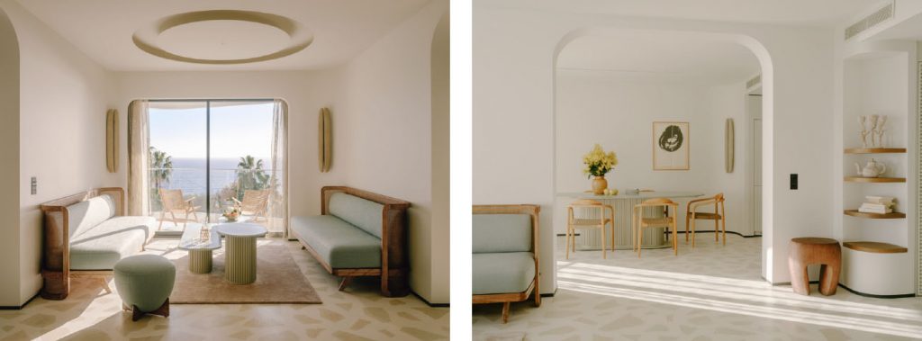Flirting with the Esterel mountain range, rocked by the sea breeze that caresses the palm trees and the soothing surf of the Mediterranean, Belle Plage has just set down roots in the calm and central Le Suquet neighborhood in Cannes. A 10-minute walk from the Palais des Festivals, this former seaside hotel from the 1930s has been entirely renovated by La Clé Group (already at the helm of Hôtel Bachaumont and Hôtel National des Arts et Métiers in Paris). A new ultra-desirable design-forward address that is opening its doors just in time for the sunny days.