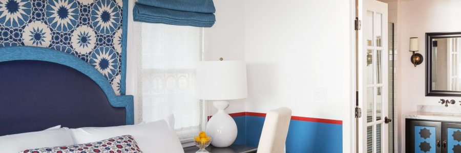 “I designed this small but charming boutique hotel to capture both the essence of the architectural style and the magic of its ocean side location,” says Martyn Lawerence Bullard. Mixing bold, traditionally Moorish tile patterns in over-scaled panels with fresh colour palettes of azure blues and golden saffron, mixed with vintage terracotta and quirky custom designed furnishings. Choice antiques have been mixed into the decorative scheme to add a sense of vintage glamour, while easy living fabrics like linen and cottons have been used to instil the beachy vibe and a relaxed atmosphere.