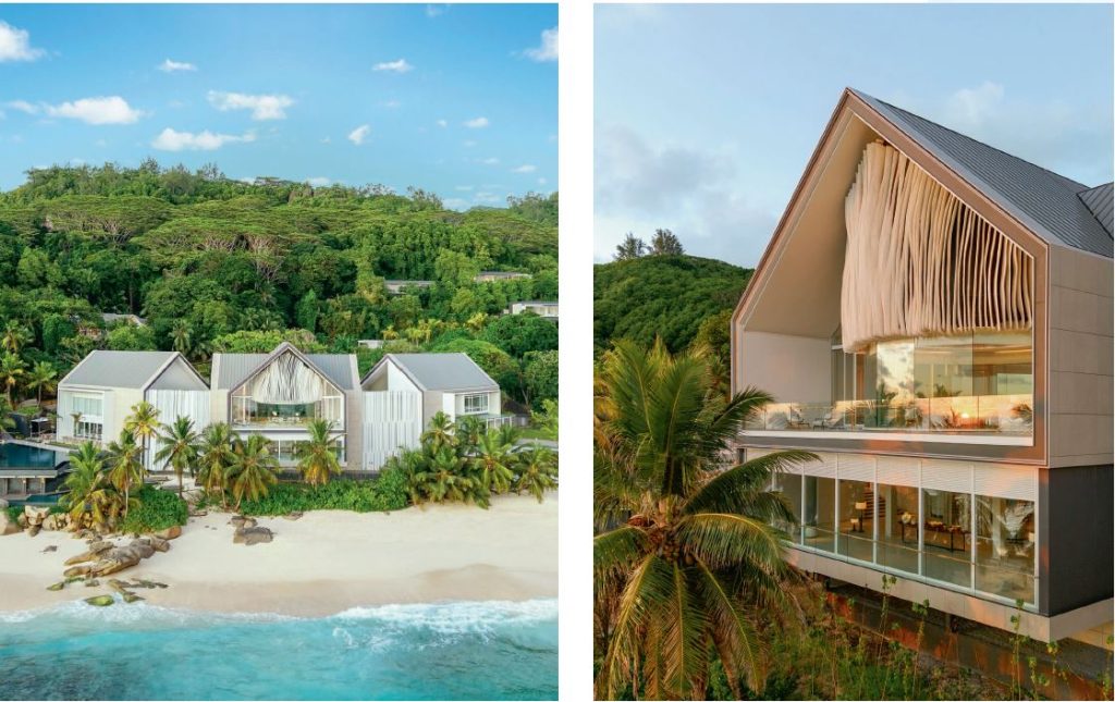 Drawing inspiration from traditional Seychelles architecture, the villas feature high, sloping roofs and wide openings that invite natural ventilation and panoramic views. Gathy’s focus on erasing boundaries between interior and exterior enables guests to experience a seamless connection with the tropical surroundings and the authentic architectural elements of Seychelles.
