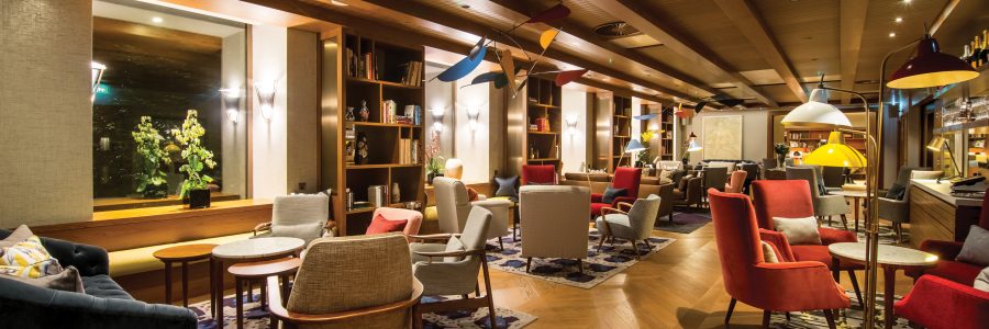 “We’ve gone for a mid-century, Scandinavian-infused design and couture overall,” continues Harris. “Gio Ponti furniture provided further inspiration to create that 50s and 60s look.” Elegant, organic and curvy furniture play tribute to this, while the intriguing art and funky print brings it to life. March & White has interpreted the likes of Ico Parisi and Finn Jhul subtly and delightfully into the design. Art curator, Brian Clivaz, who’s also the club’s Chief Executive, has chosen pieces by Leonard McComb and Kitty North, both established British artists, to feature on the walls.