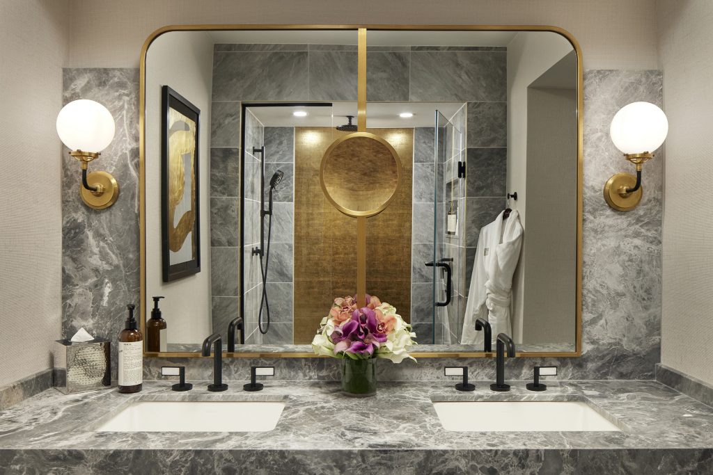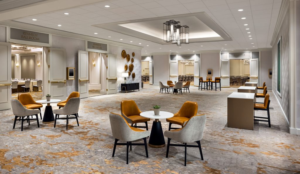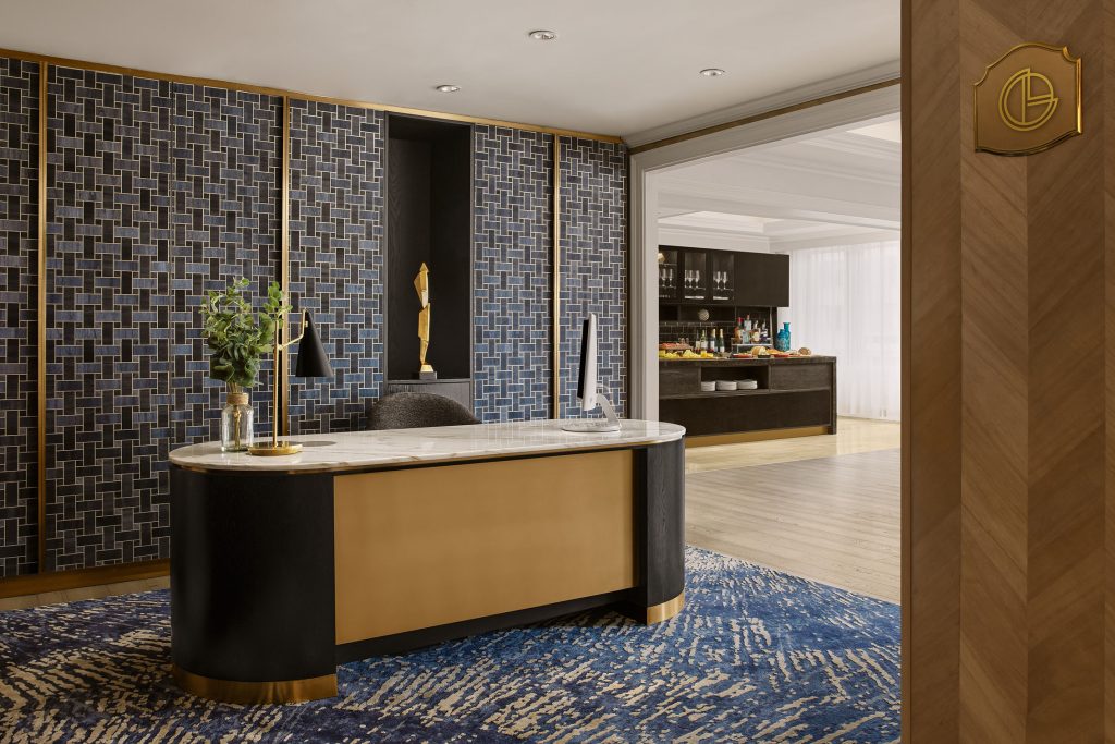 Jeffrey Beers International (JBI) undertook the renovation of the Guest Lounge, Event & Meeting Spaces, and Suites, and were inspired by DC’s grand architecture and lush parks. The colour scheme is fresh and bright to maximise the natural light, and walls are painted white with additional wall trims for an elevated look. Dark stained wood floors and gold wallcoverings provide drama.