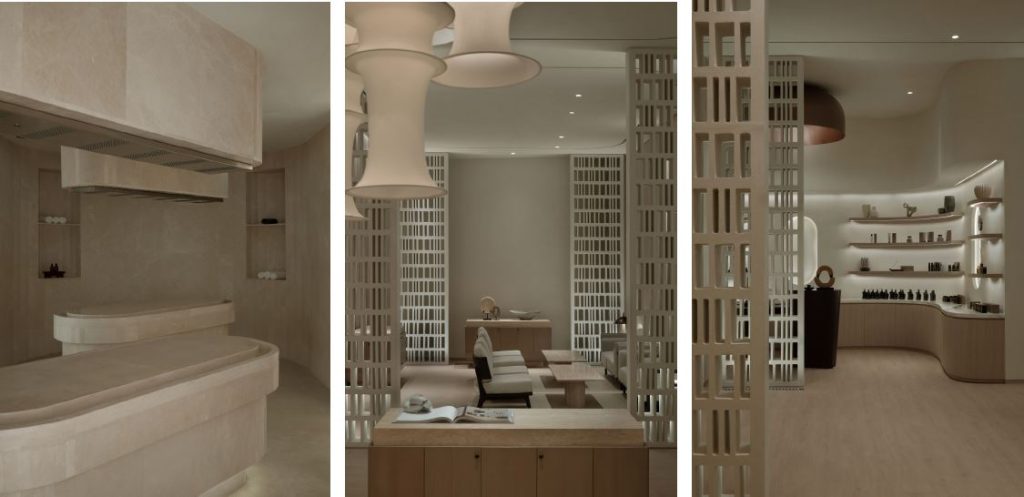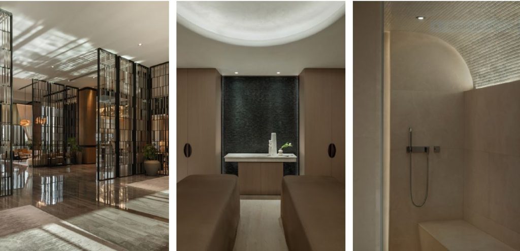 The spa offers a lighter, more tranquil interior tone that acts as a counterbalance to the richer, deeper hues found in the public areas. “This tonal dialogue creates a harmonious interplay across the property,” added Nagata. “Each space is distinct in its expression yet unified in its commitment to understated luxury and wellbeing.”