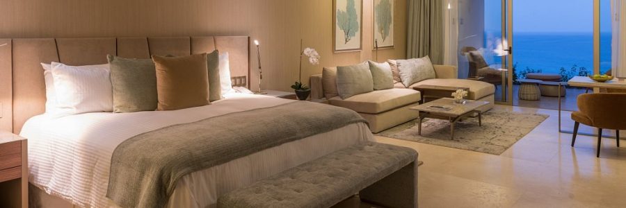 Stylish suites vary in size from 110 to 320 sq m, while all feature ocean views, private terrace with sitting area and plunge pool, separate living area with sofa, king or two queen beds, expansive bathroom with Jacuzzis. Daily turndown, personal concierge service, daily stocked premium mini-bar with refreshments and snacks, Nespresso Coffee Maker, high-definition flat screen with digital cable TV, L’Occitane bath amenities, goose down pillows and comforters, and a pillow menu are also available in-suite. A highlight of the suite is the full bottle of artisanal Mezcal, made exclusively for the resort. In the multi-bedroom Governor and Presidential Suites, a bottle of the finest wine from Ensenda also greets guests.