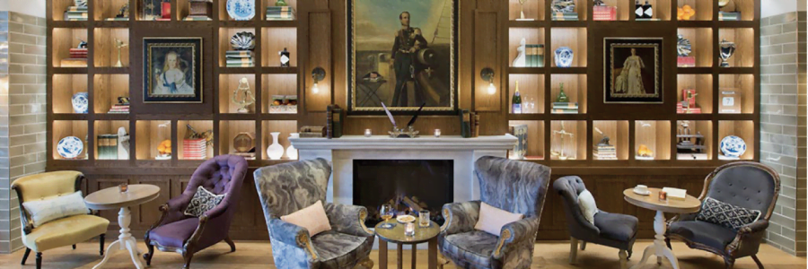 The lobby was designed to be the living room of Prince Hendrick, where the bookshelves with unique antiques sourced from Europe, were designed to be as if they were Prince Hendrick’s collection – a display of all of the pieces he may have picked up on his travels while in the German Army. Ropes suspended as light fittings and a huge yacht wheel hanging on the spiral staircase also add to the nautical feel and bring guests a unique atmosphere and experience of what it may have been like to be in this Prince’s world.