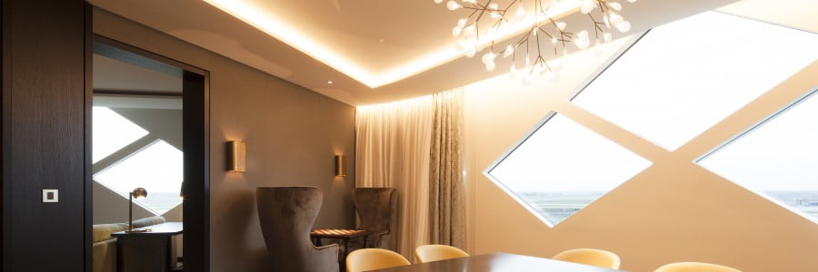 On floors 9, 10 and 11, the executive suites follow a ‘home-away-from-home’ concept. On the 10th floor a large Executive Lounge offers panoramic views of the airport and the city of Amsterdam. Its interior is an elegant balance of the contemporary and the classic.