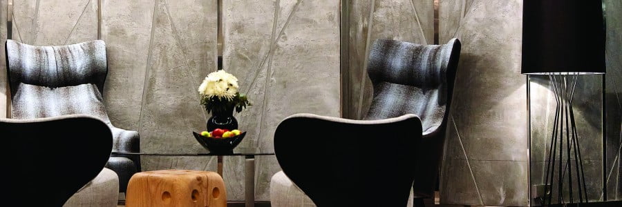 The spacious Hub lounge is configured to offer a range of possibilities for different types of gatherings and to suit both the modern traveller as well as more traditional expectations of a lobby/lounge. “Our design is obviously contemporary, but it is not ‘cutting-edge chic’,” explains Joehnk. “We created quieter ‘library corners’ where the more conventional guest would more likely feel comfortable.” Generous sofas are paired with elegant lounge chairs, while tables at varying heights are suitable for working, casual meetings or enjoying a light snack. Furniture is contemporary in style, with simple and smart designs in high-quality finishes juxtaposed with quirky occasional pieces. When speaking with Joehnk, it’s clear that duteous time and effort is spent when selecting each piece of furniture. “Our preference is to place orders with companies we are familiar with and which have good references,” explains Joehnk. The seating areas have been individually accessorised with luxurious rugs and decorative light fittings to create inviting spaces in which to relax and socialise. A central feature of the lounge is the new ‘Latitude’ bar, an all-day coffee and snack servery that transitions to wine and aperitifs in the evening; the extensive countertop and display cabinet is perfect for presenting afternoon treats and evening tapas.