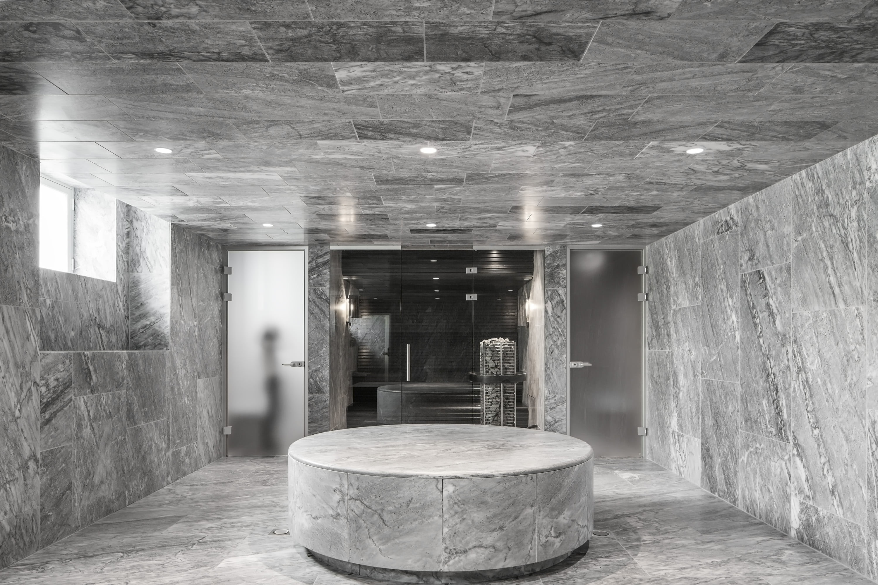 The Swedish firm of Wingårdh Architects has redesigned the interior of the hotel. They have done so with a light touch, carefully preserving the neoclassicism of the original building—the affluent elegance, the spaciousness, and the beautiful detailing. At the same time, the updated interior is carried by the clean design and playful flourishes of some new furniture and colors. Intense blue-green tones have been incorporated into the seventy-seven guest rooms, with additions to the original décor clearly articulated as freestanding objects. The materials are sourced directly from nature: marble, wood, leather, and wool. Much of the interiors have been custom designed to realize Nobis’s mission of providing a warm and relaxed hotel environment.