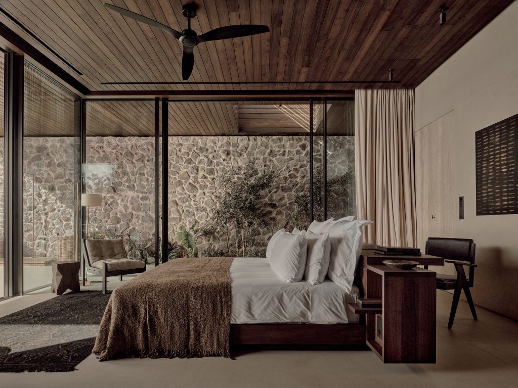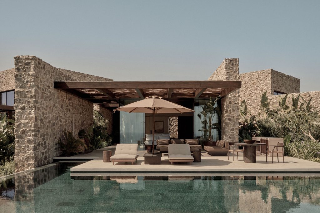 Twelve spacious bungalows are oriented to provide uninterrupted views of the sea as well as access to large terraces, small gardens and private pools. Blending harmonious design with laid-back elegance, the accommodation offers high levels of comfort and service, just a stone’s throw away from Scorpios’ vibrant community spaces and gatherings. There is a mix of single and two-storey accommodation, with sky lights that allow natural light to filter through living areas.