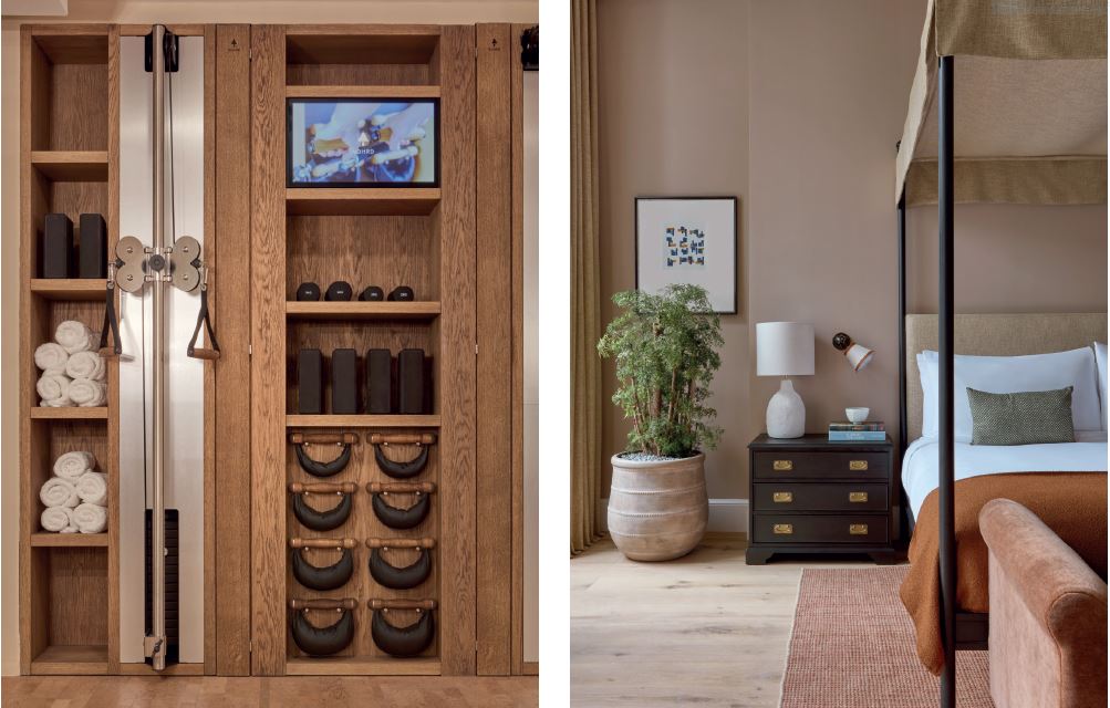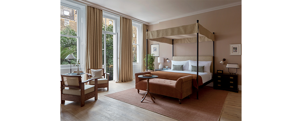 The guest rooms lean into what interior designers Thurstan Waterworth describes as “a homely yet contemporary” mood, with antique furnishings, slim-profile skirtings, and an easy elegance that reflects the hotel’s residential setting.