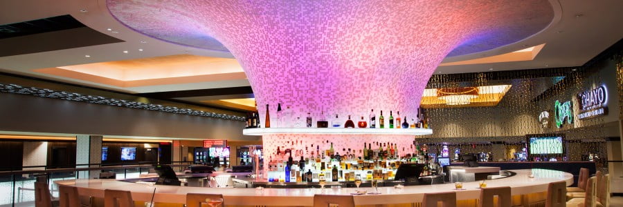 Designed as a multifunctional event space, the hotel offers a rooftop experience unlike any other. “The Vortex Roof Deck is located in a prime location in the hotel overlooking both the Strip and the LINK pedestrian mall that accompanies the hotel.” The LED surface is fully customisable to coordinate with the event taking place and its iconic shape is reflected in the downstairs 3535 bar, helping to bring the outside in.